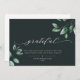 Stylish, elegant script calligraphy business holiday card reads GRATEFUL alongside modern eucalyptus watercolor illustrations, your custom text and message. On the back is space for another message and your corporate logo.