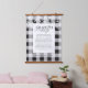 Express your gratitude with our elegant black plaid and fall leaves, hanging tapestry featuring the phrase "Grateful for Family" displayed in elegant script and serif typography combination. Designed with our hand-drawn fall leaf foliage elements and personalised with your own grateful message and your family name. Perfect for the fall season, thanksgiving, and autumn weather. All Illustrations are hand-drawn original artwork by Moodthology Papery.