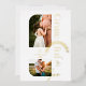 Send your appreciation to your family and friends this holiday season with a message of thankfulness and gratitude. Our modern and stylish design with an uplifting message of hope, love, and gratefulness is sure to bring your friends and family joy this Christmas holiday season. Design features a modern geometric design with simple gold foil arch shapes and concentric geometric elements. Beautiful typography "Grateful For" is paired with elegant script and serif type in gold foil. Our photo Christmas card with two pictures is uniquely framed in a modern arch design. The reverse side features your own personal message to family and friends designed within a simple geometric faux gold concentric half-circle design. Click Customise Further" to change the colour to match your photos. Design by Moodthology Papery