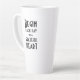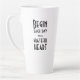 Begin your day with an attitude of gratitude. This black and white typography two-tone latte mug features the trendy saying quote "Begin each day with a grateful heart" in modern all caps. No fuss, just a bold daily morning reminder. Step by Step Inspiration Series available exclusively on Zazzle at zazzle.com/store/KrisHarty, designed by international designer, Kris Harty. © 2020 Kris Harty Step By Step Inspirational Designs