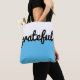 Modern and simple Light Blue Black White colour block tote bag featuring grateful script lettering. Perfect to create an atmosphere of positivity and gratitude while you are out and about. Ideal for anybody who practices law of attraction, abundance, manifesting and who wants to focus on all the blessings and positive aspects of life.