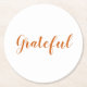 Grateful orange spice and white script calligraphy cute thanksgiving party Paper Coasters.