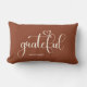 A modern simple lumbar pillow in brown with the word "Grateful", personalise with your name. This pillow is the perfect addition to your fall autumn home decorations, or makes a beautiful gift.