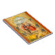 Beautiful Thanksgiving notebook showing two pilgrims bowing their heads in gratitude for the plentiful harvest around them. This image is vivid and bright with an autumn orange colour framing background. It is from a 1911 Thanksgiving image that we have restored.