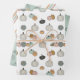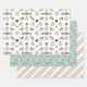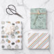 Three flat sheets of wrapping paper: one each of pastel pumpkins and gourds, grateful pumpkins and gourds and pastel stripes.