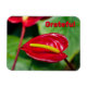Vibrant Red Anthurium Peace Lily magnet with Grateful quote.