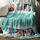 Grateful Teal Plaid Fall Family 6 Photo Collage Fleece Blanket