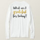 A daily reminded to express gratitude for the large and small blessings we receive. As we count them and appreciate them, the blessings we receive will come back to us many times over. Features digital brush lettering that says "What am I grateful for today" in black and gold. ⭐ Art © JessicaAmber. For more Law of Attraction apparel, check out my store zazzle.com/jessicaamberartist 🔵 For custom orders, message me on Zazzle