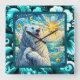 Grateful Whimsical Polar Bear Faux Stained Glass Square Wall Clock