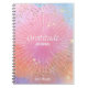 Gratitude notebook in modern abstract celestial multicolor pattern with stars and sunbeams on a background in pink, rose gold, orange, purple, blue ombre on this notebook with calligraphy font is a beautiful way to remind yourself of the blessings in your life. Take a couple of minutes out of your day to think about all the good that happened to help boost your mood and write them down in this lined notebook. Here's some simple prompts to guide you: What new opportunity came up today? Did you have a really good meal today? Did a stranger give you a compliment? It can be as simple as writing: "I am grateful for my dog." You can personalise this journal with your name on the cover, further owning the intentions for yourself (or as a gift for your loved one).