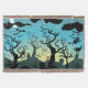 Graveyard black, aqua, yellow Halloween Throw Blanket