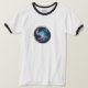 A visually striking t-shirt design that showcases the force of gravity. The image could depict a swirling vortex, a falling object, or a celestial body being pulled towards another. The colours and typography should reflect the weight and intensity of gravity, perhaps using dark shades and a bold, sans-serif font. The overall effect should convey a sense of both awe and power