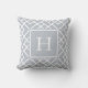 Gray and White Geometric Bamboo Lattice Monogram Cushion