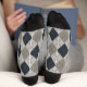 A Stylish Pair Of Gray And Black Argyle Crew Sock For Women Or Men's Footwear