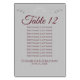 Make your wedding reception beautiful with these table number cards. They feature a simple yet elegant design with burgundy or maroon text on a gray background with a silver faux foil floral border. These cards include seating assignments so your guests will have an easy time finding the right table.