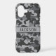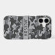 Customize this gray camouflage iPhone 17 case with your name in a trendy modern CAP font in dark gray on light gray. It's masculine and perfect for your favorite military, hunting, country or outdoorsman!
