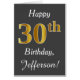 This simple birthday card design features the message "Happy 30th Birthday", with the "30th" having a faux gold-like appearance. It also features a custom name, and a gray background. It could be given to somebody who is celebrating their thirtieth birthday.