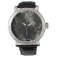 Vintage men's watch with black leather strap v.boscher gray ink design