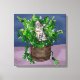 Adorable hand drawn gray cat sitting in a pot of catnip.