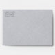 The elegant, simple, and minimalistic immigration attorney business mailer envelope design features customizable black typography on a gray linen texture background.