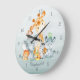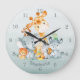 Gray Mint Watercolor Cute Safari Jungle Animals Large Clock