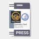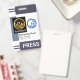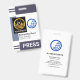 Cover features a pair of gray shades stripe column at the top and lower layers of the badge. At the left wall of the badge is a special light gray placard that holds a photo template. Here you can place photos that that have a size of 1,000 x 1,200 pix. That column will help with photos that have a white background. Beside the photo is an optional blue globe logo you can use. The logo is based on a "broken world" design concept. This is followed by your prestigious name, job title and the employee number underneath. A caption "PRESS" can be found near the base of the badge, change this to suit your service needs.