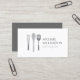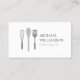 A trio of common kitchen utensils along with your name or company name makes the perfect logo on this customisable business card for a catering company, restaurant, personal chef, food writer, food truck, or any food-based business. © 1201AM CREATIVE