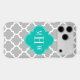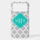 Gray White Moroccan #5 Teal 3 Initial Monogram
