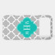 Gray and White Moroccan Quatrefoil Trellis Pattern #5, Teal Quatrefoil 3 Initial Monogram Label