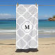 Gray White Quatrefoil Pattern Monogrammed Beach Towel