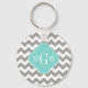 Gray Wht Chevron Aqua Quatrefoil 3 Monogram Key Ring