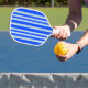 Grayish Grey Green Line Stripes On Blue Pickleball Paddle