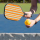 Grayish Grey Green Line Stripes On Orange Pickleball Paddle