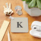 A stylish keychain featuring your initial on both sides of the keychain with grey colours.