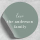 Grayish Sage Green Elegant Chic Handwritten Love Classic Round Sticker