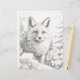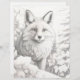 Grayscale colouring page featuring a fox standing in snow in a Winter forest. Choose the paper for your favourite medium. I suggest the recycled paper for crayons, pastels, and charcoal.
