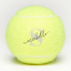 Scripted elegant trendy personalised name tennis balls with a classic large serif grayscale initial background.