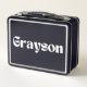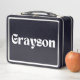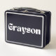 The name "Grayson" prominently displayed on the front in a contemporary font adds a layer of personalisation that transforms this lunchbox into more than just a functional item. It’s a stylish accessory that complements any routine, whether Grayson is heading to class, the office, or an outdoor adventure. The personalised touch makes it easily identifiable, eliminating mix-ups and giving it a distinct and meaningful charm.