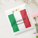 Grazie Italian flag of Italy wedding party Favour Bags. Green white and red flag of Italy design with elegant script text. Perfect for thanking guests in Italian language. Personalise with name of bride and groom. Also useful for other occasions.