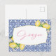 Grazie Italian Lemons Blue Tiles Shower Thank You Postcard