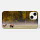 iPhone case featuring an Elk couple graze a field on a chilly autumn fall season morning with some lingering fog. The large bull elk eats some grass while the female cow elk looks on. This is in Boxley Valley, Arkansas, USA.