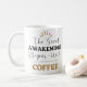 Great Awakening Coffee Mug: Brew Meets Modern Day. Experience a personal revival with every sip! 'The Great Awakening Begins With Coffee' merges the fervent spirit of historical religious revivals with the daily ritual of coffee consumption. Perfect for history buffs, coffee lovers, and those who appreciate a blend of wit and wisdom. Get your dose of enlightenment and caffeine in one go!