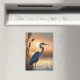 Sunrise in a misty marsh with a great blue heron standing among reeds makes a beautiful magnet that's perfect for anyone who loves birds, nature, and the outdoors.