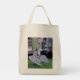 The printing came out very well, better than I had anticipated. The natural color fabric is sturdy with strong seams and comfortable handles. This tote fits easily over my shoulder. As it is filled, the bottom flattens out--very cool! I would buy this product again. This grocery tote holds a lot of groceries! The image quality was very good. The colors were a little darker than I had expected. The darkness may have been due to printing on a natural color fabric rather than on white. The cat design is attractively centered on the tote. The spirit of the design is very lively, just as it appears on the Zazzle website.