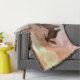 A quality printed throw has its advantages. This is a much finer weave throw than its loopier cousins, and though lighter, it is worth the investment for custom room accessorizing. The back is much prettier than the typical brown, and the fringe on the long sides very vivid, the selvage nicely done. Before photographing, I washed the throw in cold water, delicate, with a thicker woven throw the same size. On tumble dry low, this throw was dry in half the time as the other. This is a very practical quality if you use throws for furniture covers or to wrap up in frequently. The sleekness of the fabric makes it a great layer for accenting or protecting without the feeling of sitting on too much stuff. Perfect for napping or when you feel a light chill coming on. The color printing is beautiful and on this fabric, matched the design and color of my Photoshop image. This is an advantage for blending room fabrics and colors. The fringe on the short sides prints the colors from the design image and therefore varies from the side fringe. I streaked a white fractal line through the plaid pattern to give the illusion of weaving. This printed as crisp as an illusory thread, and put some white in the short side fringe, showing another advantage of print vs loomed- for artistic purposes, line lines, detail, and color integrity can be planned and preserved. My loomed throws have color limitations and more of a needlepoint texture. Print throws reproduce an exact image. The throw felt a little stiff straight out of the package, but this went away in the first delicate wash. Of course I searched the wash water for ink or bleeding and there was none.