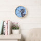 Personalise (add your text or change the image) on photography of a Great Blue Heron with his mouth open and his tongue showing designed on any Zazzle Wall Clocks on a blue background (sky view). This clock design with hour & minute dials. Photography of a Florida wild wading bird. Large birds. Wildlife. Wildlife of Florida. On the left hanging a Spanish moss.