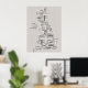 A typographic text map of Great Britain. Major cities within the United Kingdom are shown on the map, which is made entirely from text.