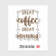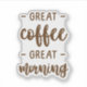 Add personality to your space with these high-quality custom-cut Great Coffee Great Morning stickers, perfect for decorating desks, laptops, journals, and more.