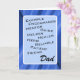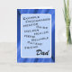 The design features a list of several qualities that a great dad possesses. Colorful blue background. The inside message reaffirms the thought that this is "my Dad." All text (front and inside) is fully changeable with the template. Selecting “Personalize this design” offers you several edit options to easily change the text (wording, plus type font, color, size, position) and to possibly edit the design elements. You may also want to scroll down to the section “Transfer design to a product” for a few suggestions about other items this design can be used on. Simple card, great message.
