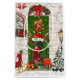 Great Dane Dog Christmas sitting outside decorated home with Christmas wreath, Christmas tree is a perfect Christmas gift idea for dog lovers.